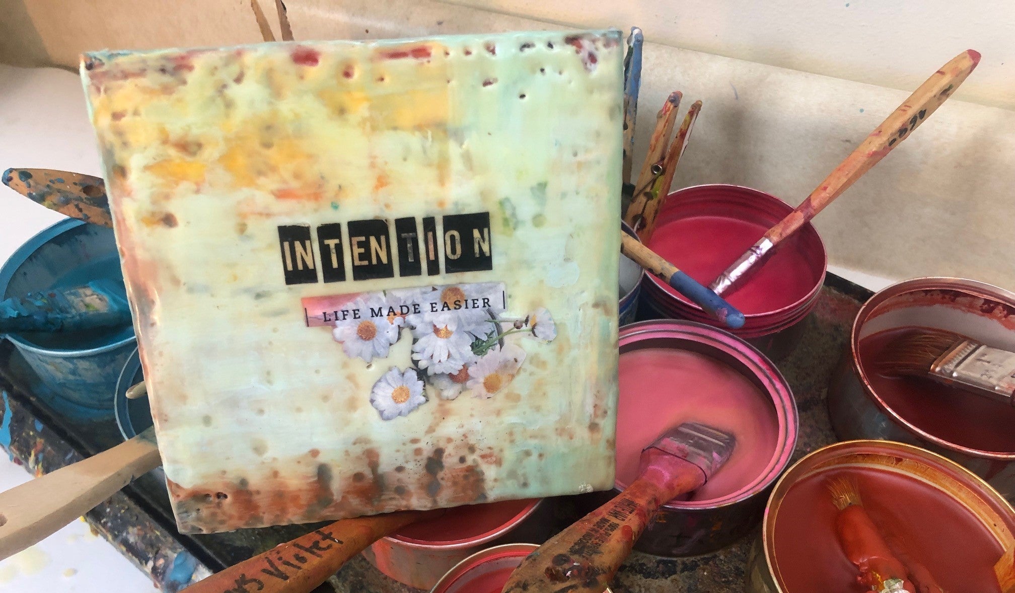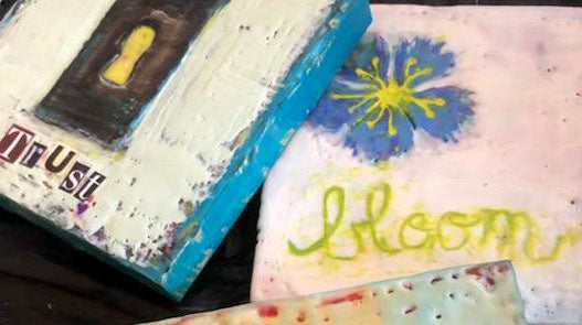 Play with the medium of encaustics (hot bees wax, damar varnish and pigments) to create an expressive and meaningful piece of art for your own Word of the Year.